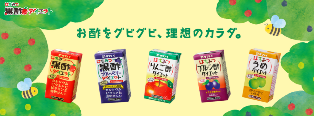 1907年創業のタマノイ酢が展開する「はちみつ黒酢ダイエット」は、国産黒酢にはちみつとりんご果汁を加えた飲みやすいお酢ドリンクです。コンビニ・スーパー・ドラッグストアで手軽に買えるストレートタイプの小容量品が特に人気で、気軽にお酢を取り入れたい方向けの入門商品として親しまれています。