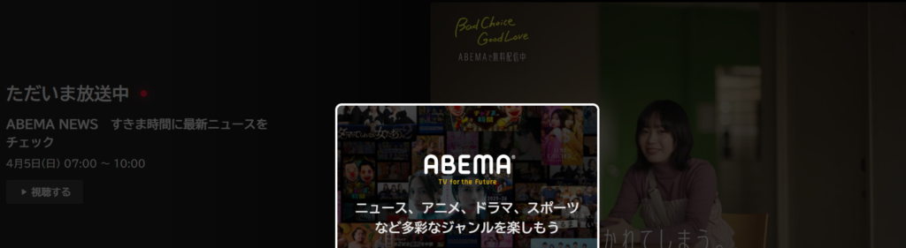 恋愛リアリティーショー・国内オリジナルバラエティ・アニメ最速配信・ニュース・追っかけ再生→ABEMAプレミアム:他のどのサービスでも代替できない唯一無二のコンテンツが揃います。