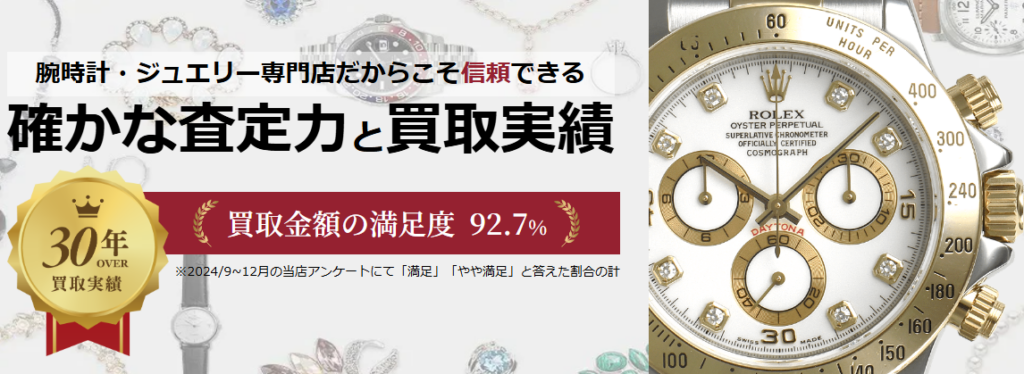 - 自社修理工房完備で壊れた時計も高額買取。故障品・不動品でも修理コストを見込んだ上で適正な高額査定を提示してくれます。「壊れているから安く叩かれる」という心配が不要です