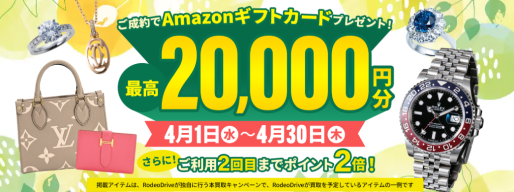 買取と購入の同時利用で査定額アップサービスを提供中。買取強化キャンペーンも随時開催。詳細はロデオドライブ公式サイトをご確認ください。