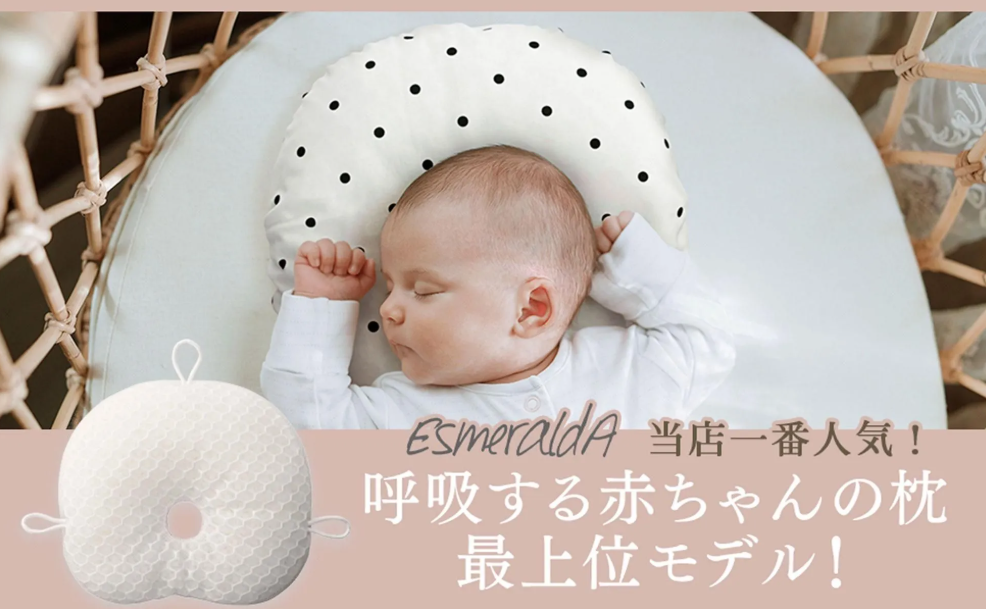 赤ちゃんの向き癖・頭の形・寝ハゲが気になる方は、できるだけ早い段階から対策を始めることが大切です。なかでもエスメラルダ 呼吸する赤ちゃんの枕 スライド式は、新生児からあらゆる向き癖に対応できて高さ調節も簡単なシリーズ最高傑作。楽天ランキング1位・累計100万個超の実績が信頼を物語っています。詳しくは公式サイトでご確認ください。