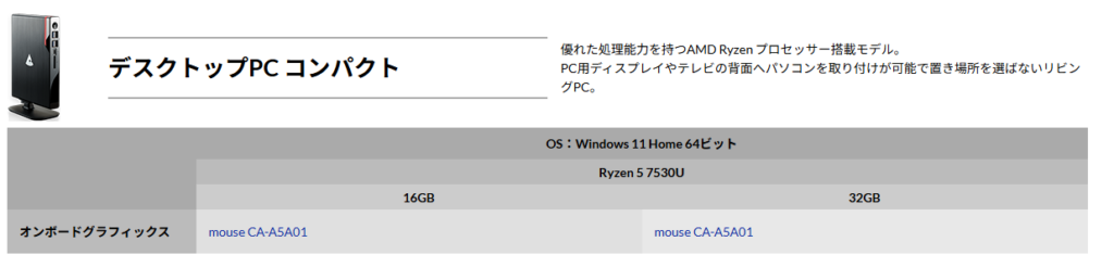 マウスコンピューター mouse CA|国内生産・充実サポートの安心ミニPC