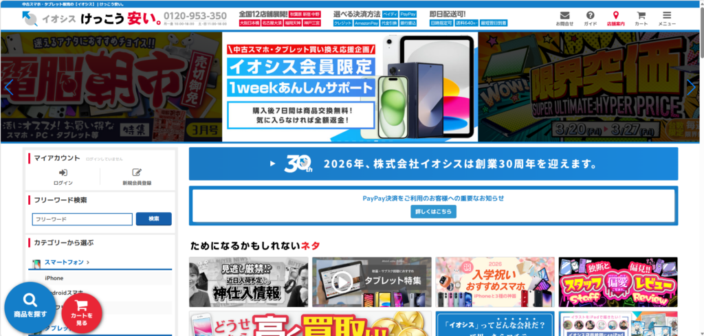 中古スマホ選びで迷ったら、まずチェックすべきはイオシスです。