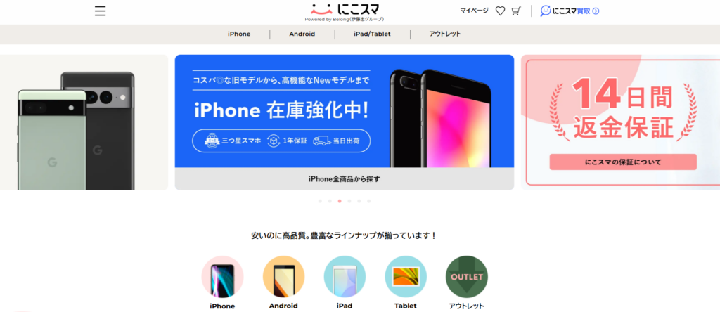 伊藤忠グループが運営する安心重視の中古スマホ販売サービス。品質と保証に力を入れています。