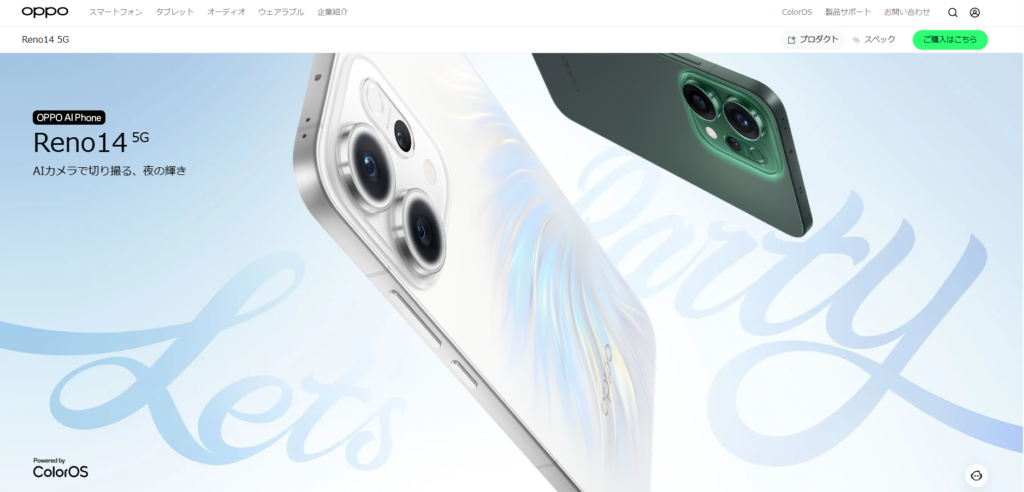 コスパ・カメラ性能・デザインのバランスが圧倒的に優れているのがOPPO Renoシリーズです。特に若年層から支持されている理由は、AIカメラの性能の高さと、手頃な価格帯にも関わらず高級感のあるデザインにあります。