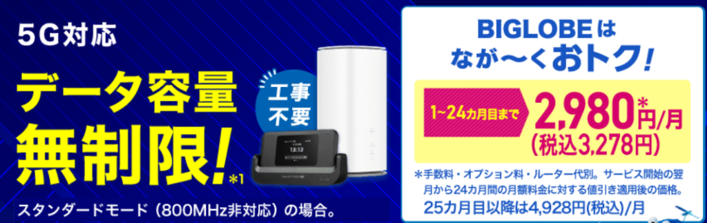 🥇第1位:BIGLOBE WiMAX +5G