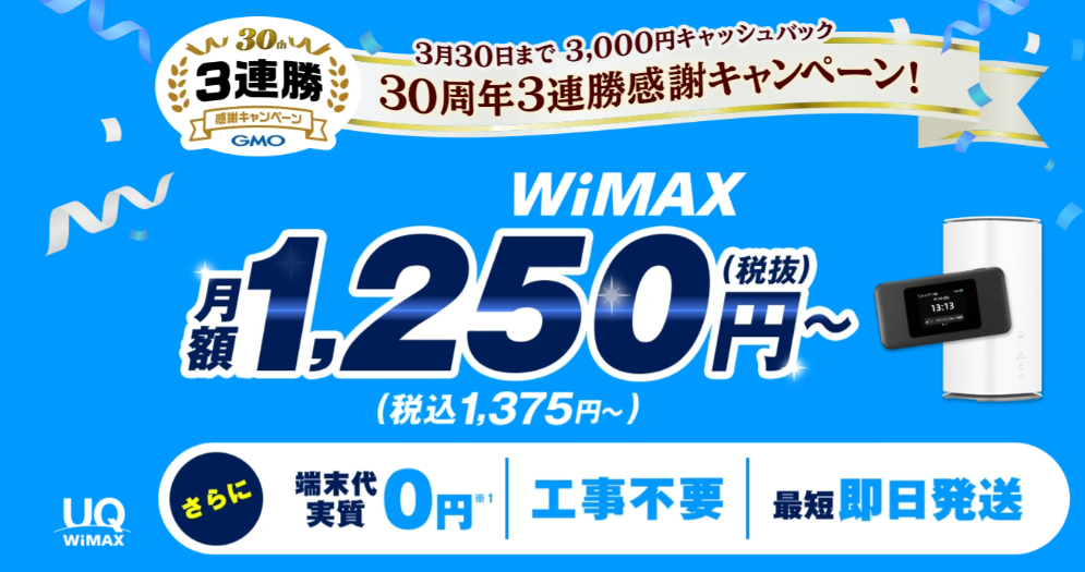 🥉第3位:UQ WiMAX